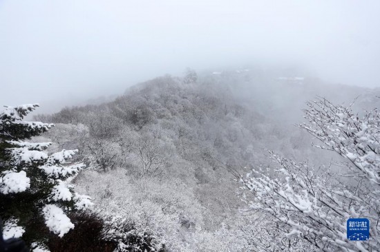 受冷空气影响,位于甘肃省平凉市的崆峒山景区迎来降雪,景色如画。