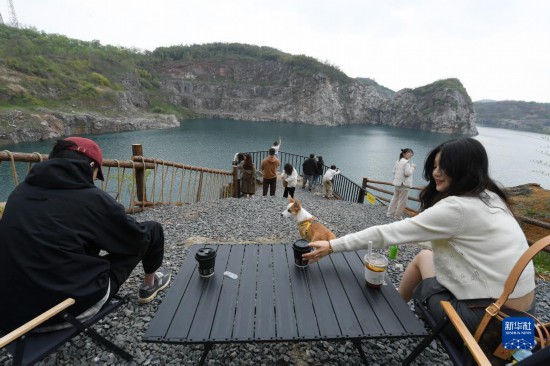 4月7日,游客在安吉县梅溪镇红庙村一咖啡馆休闲。
