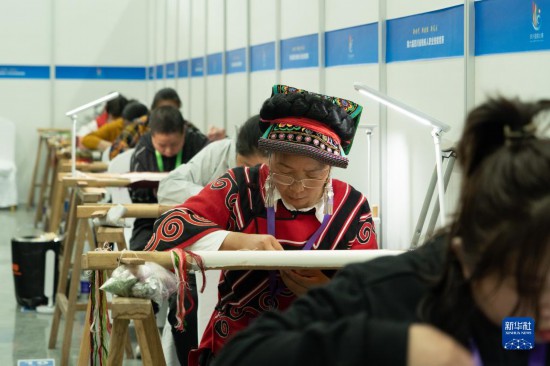 4月12日,在四川省绵阳市公共实训基地,参加刺绣项目的选手正在比赛中。