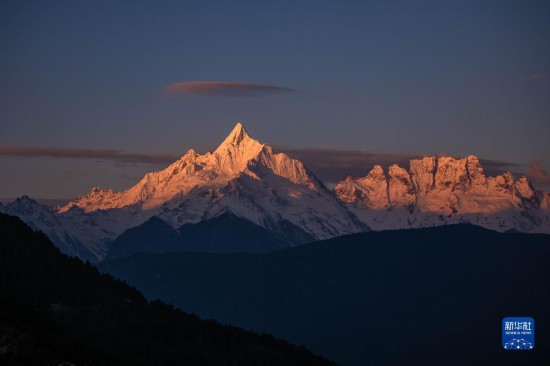 这是日出时分拍摄的云南省迪庆州梅里雪山一景(2023年3月10日摄)。