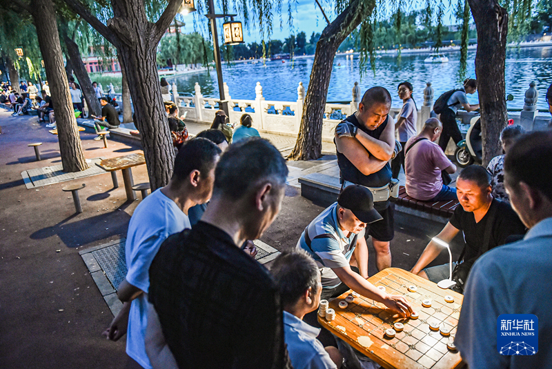 2023年6月10日,市民在北京什刹海边下棋。新华社记者 陈钟昊 摄