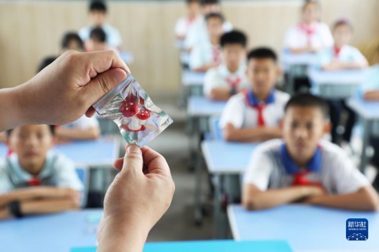 6月25日,在河北省唐山市丰润区姜家营镇杨家铺小学,民警为学生讲解毒品危害。
