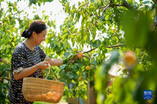 7月3日,市民在河北省唐山市路北区一处家庭农场内采摘鲜杏。