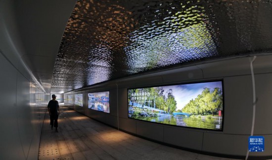 新建成的展示城市文化历史的亮马河燕莎桥滨水通道(7月5日摄)。