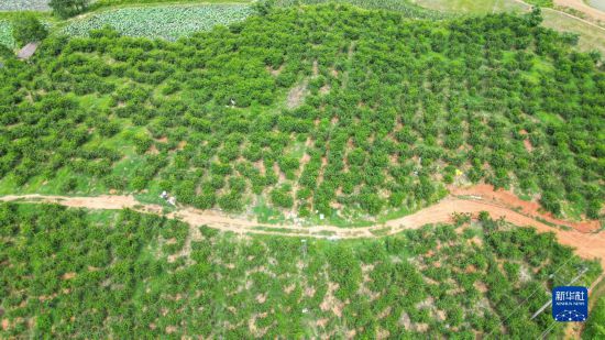 这是7月7日拍摄的临湘市聂市镇乘岭社区的涓湖果园的一片蟠桃林(无人机照片)。