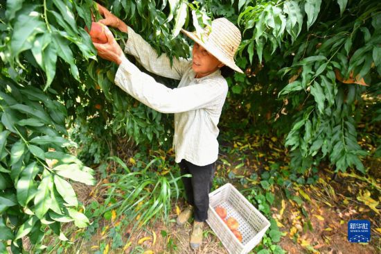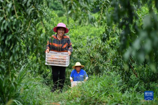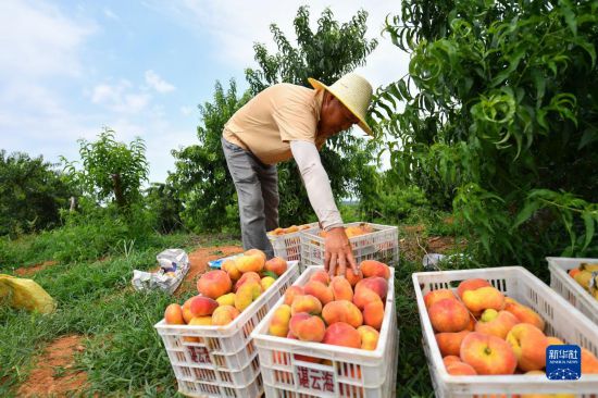 近日,湖南省岳阳市临湘市聂市镇乘岭社区迎来蟠桃丰收。近年来,临湘市聂市镇乘岭社区致力于打造集种植、旅游、休闲、餐饮住宿等为一体的田园综合体,带动当地群众增收致富。