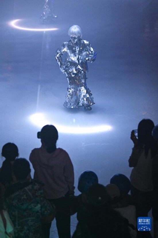 7月8日,游客在新密市银基国际旅游度假区观看节目表演。