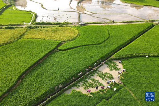 盛夏时节,湖南省多地进入一年当中最繁忙的“双抢”季节,农民们冒着酷暑抢收早稻、抢插晚稻,为全年粮食丰产打下基础。新华社发(李建新 摄)