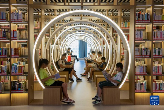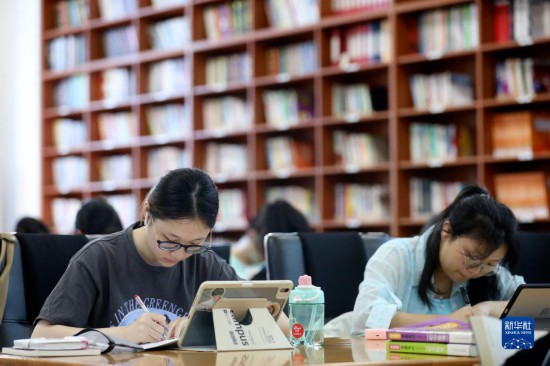 7月12日,学生在浙江省金华市金东区图书馆阅读。