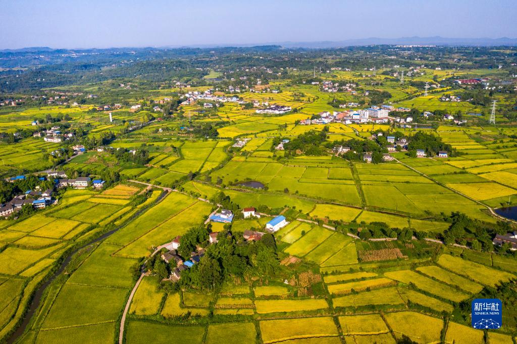 四川省广安市广安区大安镇南桥村水稻泛黄成熟(无人机照片,8月15日摄)。