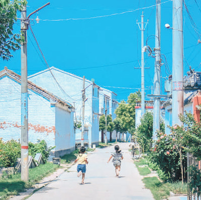刘庄村的孩子们在村路上嬉戏。 |
