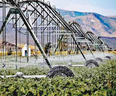 8月28日,内蒙古自治区林西县新林镇,节水灌溉设施正在作业。内蒙古7个盟市农业水价综合改革总任务2370万亩,截至7月底,已实施2278万亩,占总任务的96%。
