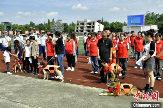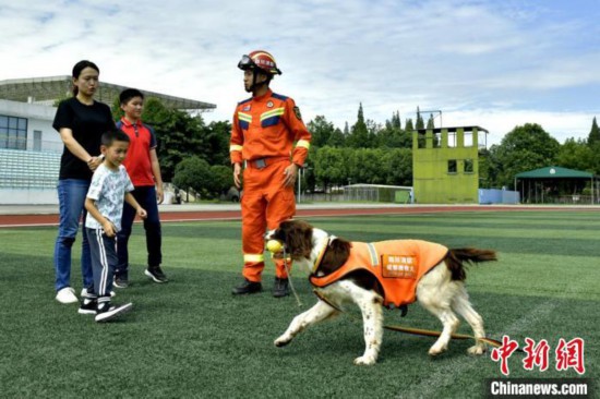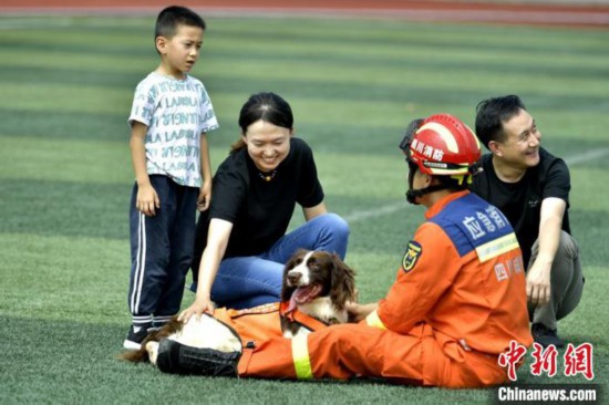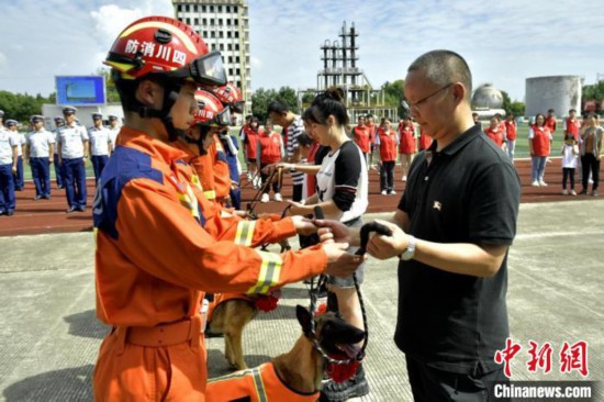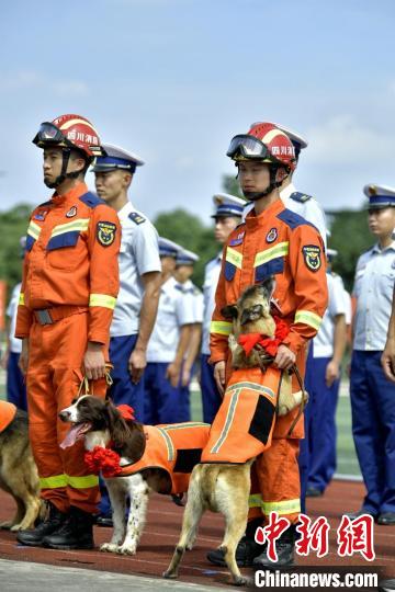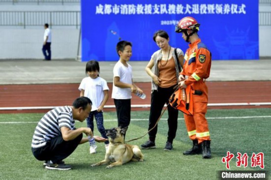 成都消防4只搜救犬退役仪式现场。中新网记者 刘忠俊 摄