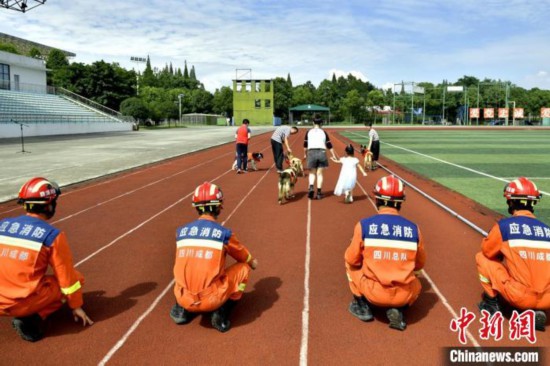 成都消防4只退役搜救犬有了新主人和新家。中新网记者 刘忠俊 摄