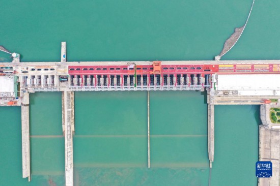 9月2日拍摄的广西大藤峡水利枢纽泄水闸(无人机照片)。新华社记者 曹祎铭 摄