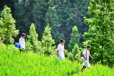 贵州榕江县,三位村医走在忠诚镇定弄村郊外的田埂上。新华社发