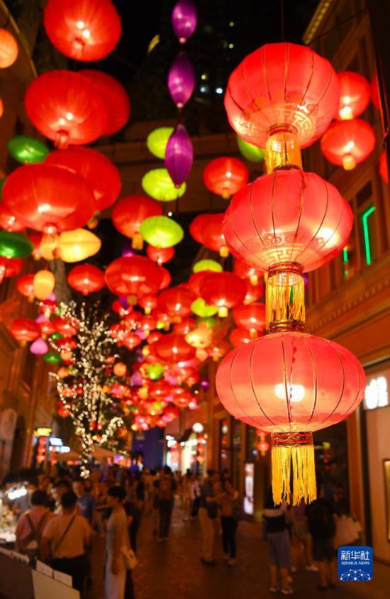 9月17日,人们在利东街观赏彩灯。
