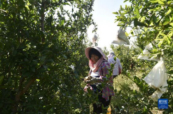 9月21日,村民在“拾榴花果山”农业生态园里采摘石榴。