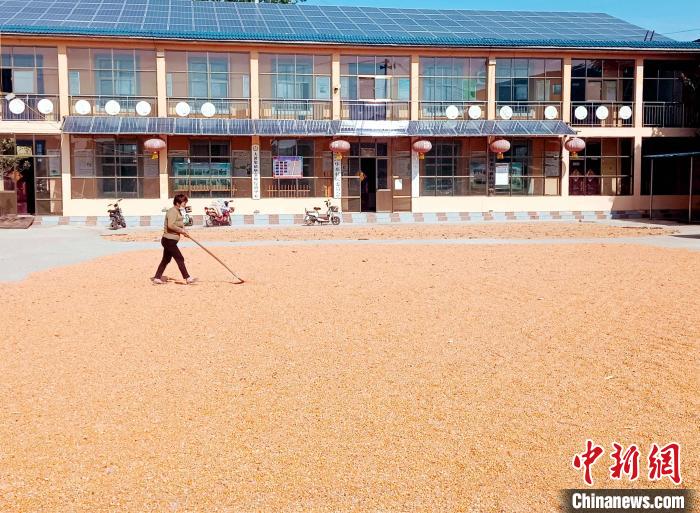 开展秋收以来,菏泽市牡丹区大黄集镇沙李村村主任李国华每天都通过大喇叭进行广播,引导村民尽快将收获的粮食晒干存储。在该村村委会大院内,铺满了金色的玉米。村民毕建涛表示,与往年提前在路上“抢”场地不同,今年他直接把小麦晒在了村委会大院里。