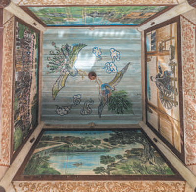 地坪风雨桥上绘有各式图案。 |