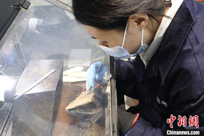 中新网吉林10月24日电 (记者 苍雁 石洪宇)将金属文物放进除锈机,崔琬莹小心翼翼地去除铁器表面锈蚀,尽可能地还原文物原本的面貌。100多件铁器,她要用一个星期左右才能处理完成。玻璃门窗之外,公众可全程参观其工作,见证文物如何“活”起来。