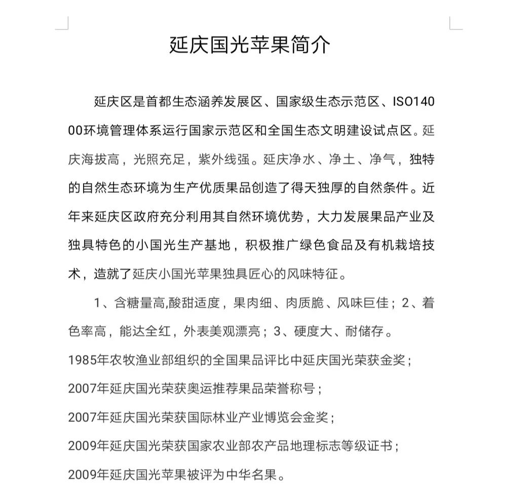 佘雅琳会长说:“小国光”苹果在北京市仅延庆地区生产,虽说个头小、但比较匀称,口感酸甜,是“中国国家地理标志产品”,价格公道,可以物流到家,一个电话送上餐桌!