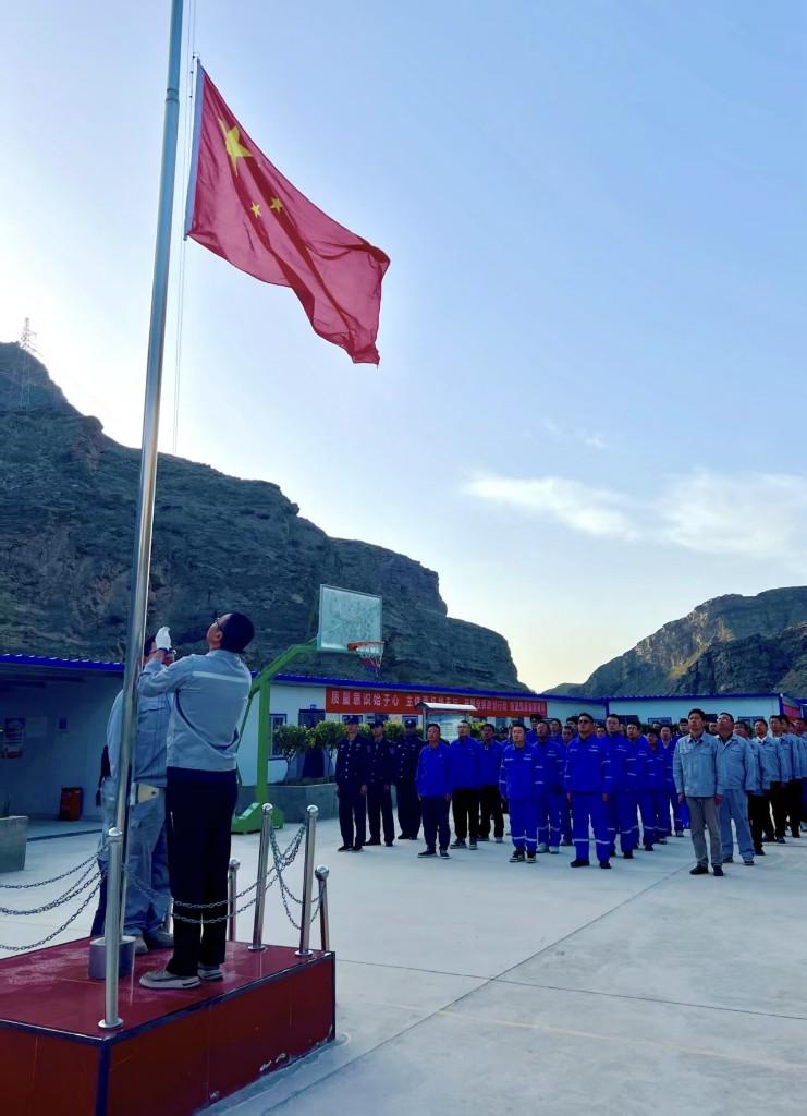 国旗下,拜城县源网荷储能源开发有限责任公司常务副总经理刘林说,此次联合升旗既是庆祝、又是动员,全体建设者要牢记初心使命,聚焦自治区发展大局,全力推进重点工程建设。