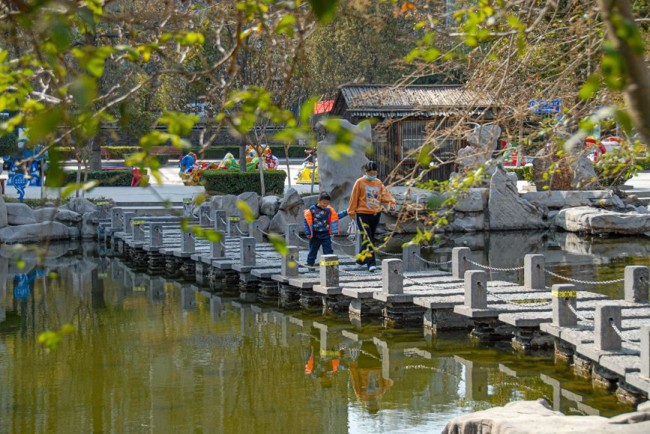 趁着春日晴好,许多市民走出家门,穿梭于桃红柳绿之间,悠享美好时光。