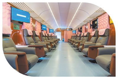 一个可以容纳126人过夜的绿皮“小火车”,每晚10点开门迎客,直到第二天早上8点。浙江中医药大学的大一学生金璐羽是最早一批体验者之一,她买了早上6点半的车票,但学校到东站距离较远,最早的地铁也赶不上这班早车。“原本都打算和同学在候车室里坐到天亮了,没想到东站推出了这个‘宝藏’休息区。”金璐羽点赞道。