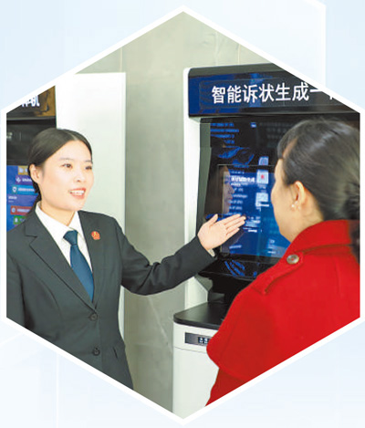 法院工作人员帮助当事人使用智能诉状生成一体机。 |