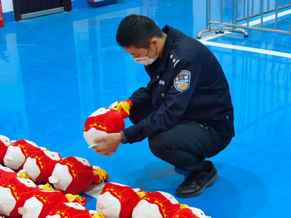 公安民警起获的假冒“雪容融”。赵少聪摄