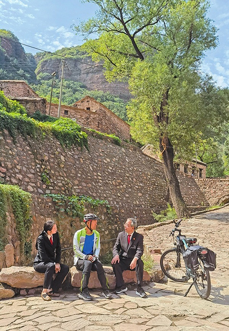 近日,河北省沙河市人民法院驻西沟村工作队干警深入西沟村街巷、景区步道,为村民及游客开展“法治微课堂”。从民宿经营规范到消费者权益保护,再到户外安全提示,干警们用通俗易懂的语言讲解法律知识,以精准司法服务护航乡村文旅发展。图为驻村工作队干警向骑行游客讲解安全须知与维权途径。魏振敏 摄