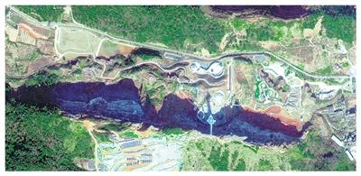 江西新余市金石山矿山公园2020年卫星遥感图。