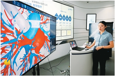 近年来,安徽省全面布局人工智能产业发展,各类人才、技术、项目、资金等资源加速汇聚,为人工智能产业发展提供强劲动能。图为工作人员在位于安徽省合肥市的“中国声谷”体验中心介绍一款智慧医疗产品。 |