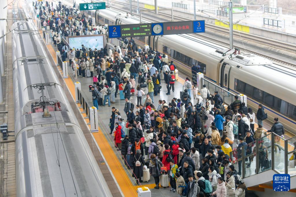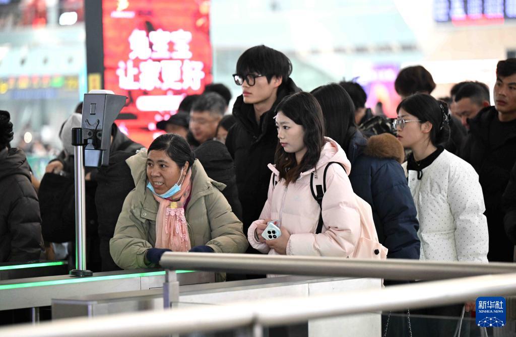 1月3日,旅客在南京火车站乘车出行。新华社发(苏阳摄)