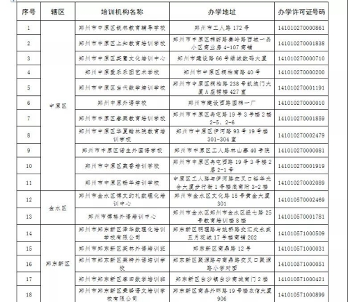 10月23日,郑州市教育局为规范校外培训机构办学行为,下发了《关于现有校外培训机构重新审核登记和管理体制调整申报工作的通知》,通知要求全市经教育行政部门审批、市场监管或民政部门登记的校外培训机构于2021年10月25日至2021年10月29日向所属辖区教育行政部门递交申报材料。截至11月22日,尚存197家校外培训机构未递交申报资料或递交的终止办学申报资料不齐全,现向社会予以公布。