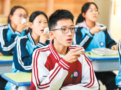 昆都仑区一所中学的学生使用英语听说学习平台进行练习。 |