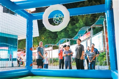 福建省科技馆“科学之夜”现场,青少年体验无人机足球。 |