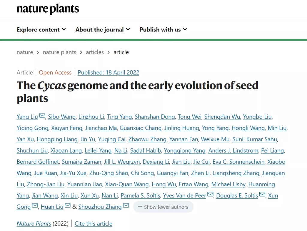 深圳华大生命科学研究院刘阳、王思博、李林洲、杨婷、魏桐,深圳仙湖植物园董珊珊,兰州大学武生聃等为该论文共同第一作者。深圳仙湖植物园张寿洲,深圳华大生命科学研究院刘欢,中科院昆明植物所龚洵,美国佛罗里达大学Douglas E. Soltis,比利时根特大学Yves Van de Peer为论文共同通讯作者。