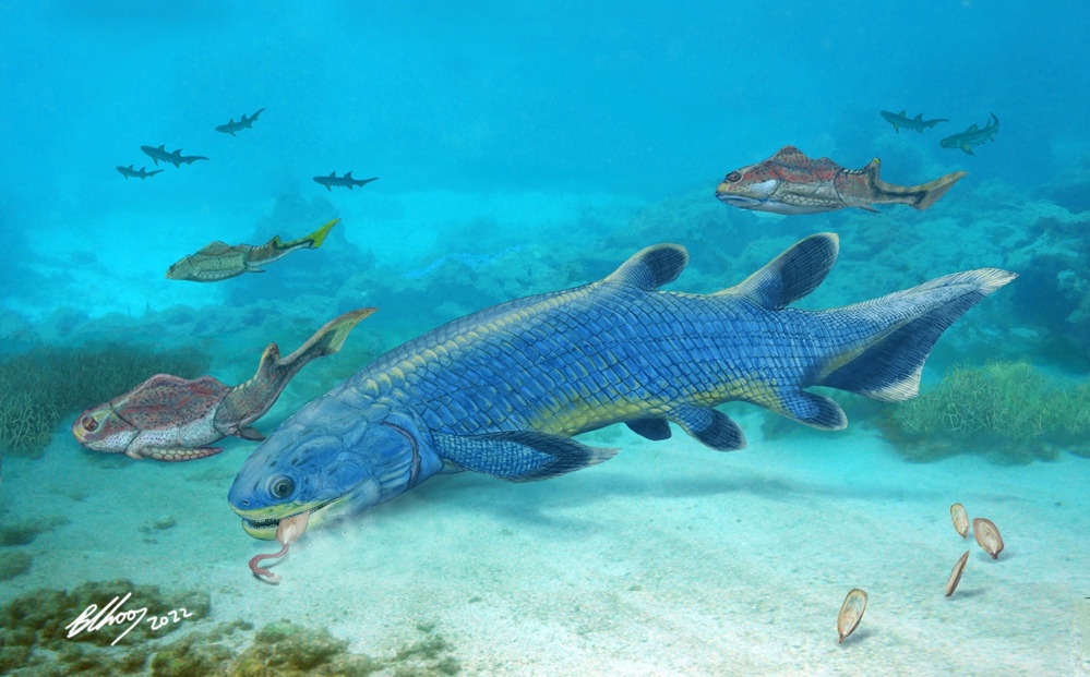 先驱杨氏鱼生态复原图(Brian Choo绘)
