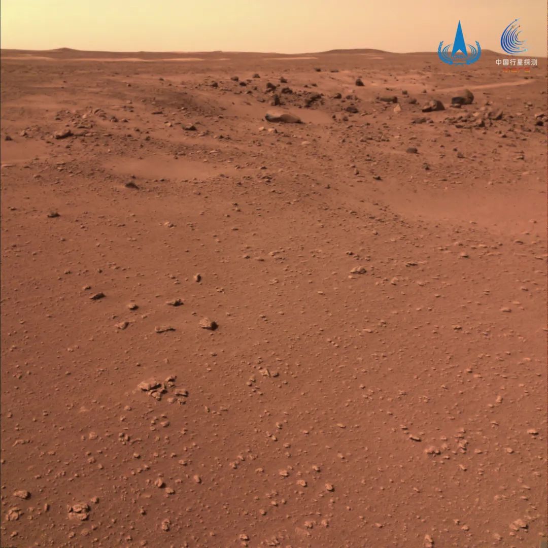 导航地形相机拍摄的火星表面撞击坑附近分布的石块影像。来源:中国探月与航天工程中心