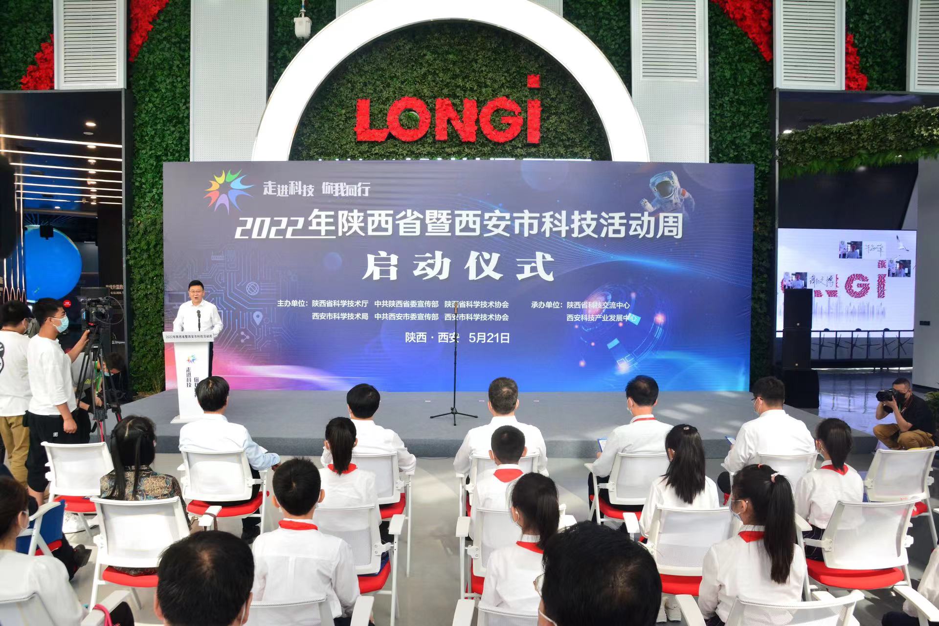 5月21日,2022年陕西省暨西安市科技活动周启动仪式在隆基绿能科技股份有限公司西安总部举行。陕西省副省长方光华与陕西省科技厅、省委宣传部、省科协、西安市科技局、市委宣传部、市科协等其他与会领导共同按下启动键。