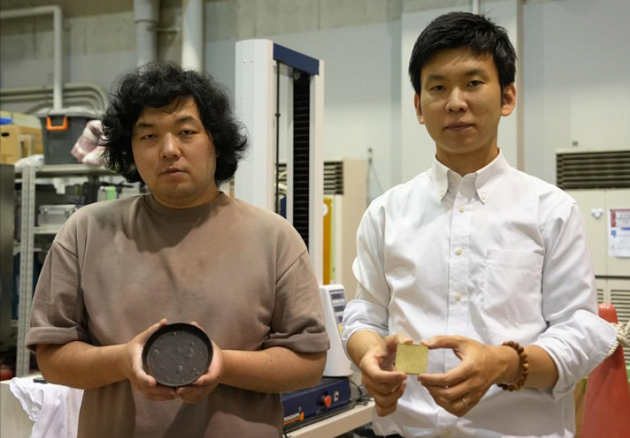 ▲科学人员使用食物残渣制作出水泥(右边为酒井)