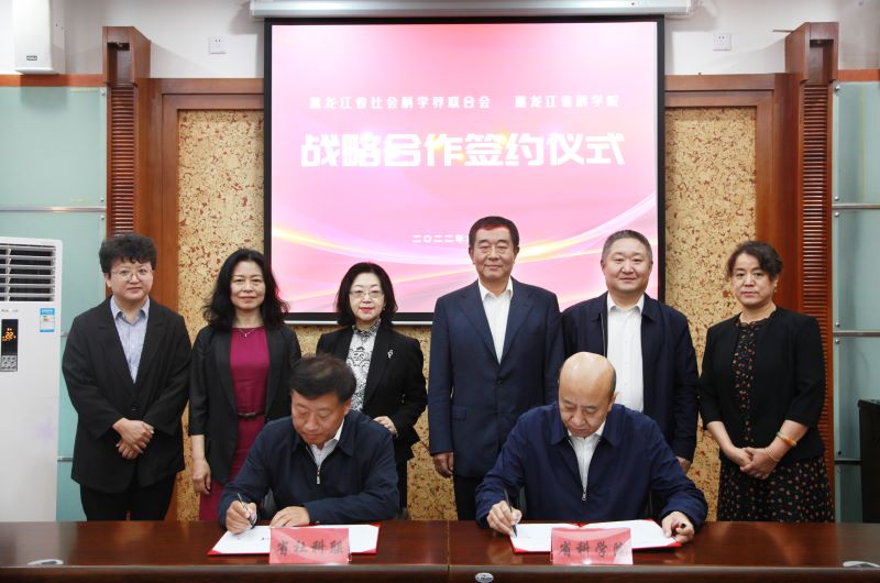 黑龙江省社科联副主席计世伟、黑龙江省科学院副院长谢大纲代表双方单位签订战略合作协议。会议由黑龙江省科学院院长、党组副书记刘春燕主持。