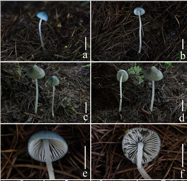 据悉,担子体蓝色是小菇属中较少见的类群,早期的文献资料记载中蓝色小菇主要分布在南半球的澳大利亚、新西兰,20世纪后北半球才陆续报道了5个蓝色小菇物种。2019年以前,国内蓝色小菇仅报道来自南方亚热带地区,团队以此为线索,在此次调查过程中有了新发现,将世界蓝色小菇物种增加至9个。