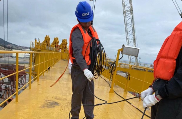 “布置测点时间紧迫,必须选取最有意义的测点先行布置!”“测试现场可能会下大雨,一定要做好设备、传感器的防风、防水工作!”虽然团队成员大部分在几千公里之外的哈尔滨,但充分的前期准备工作让前方技术和后方成员配合默契,顺利完成了各项工作。现场服务团队发扬哈工程优良传统和艰苦作战精神,连续奋战72小时,克服现场时间紧、任务重、连续降雨和配套设施缺乏等困难,抢在风机拖航前完成系统安装调试。