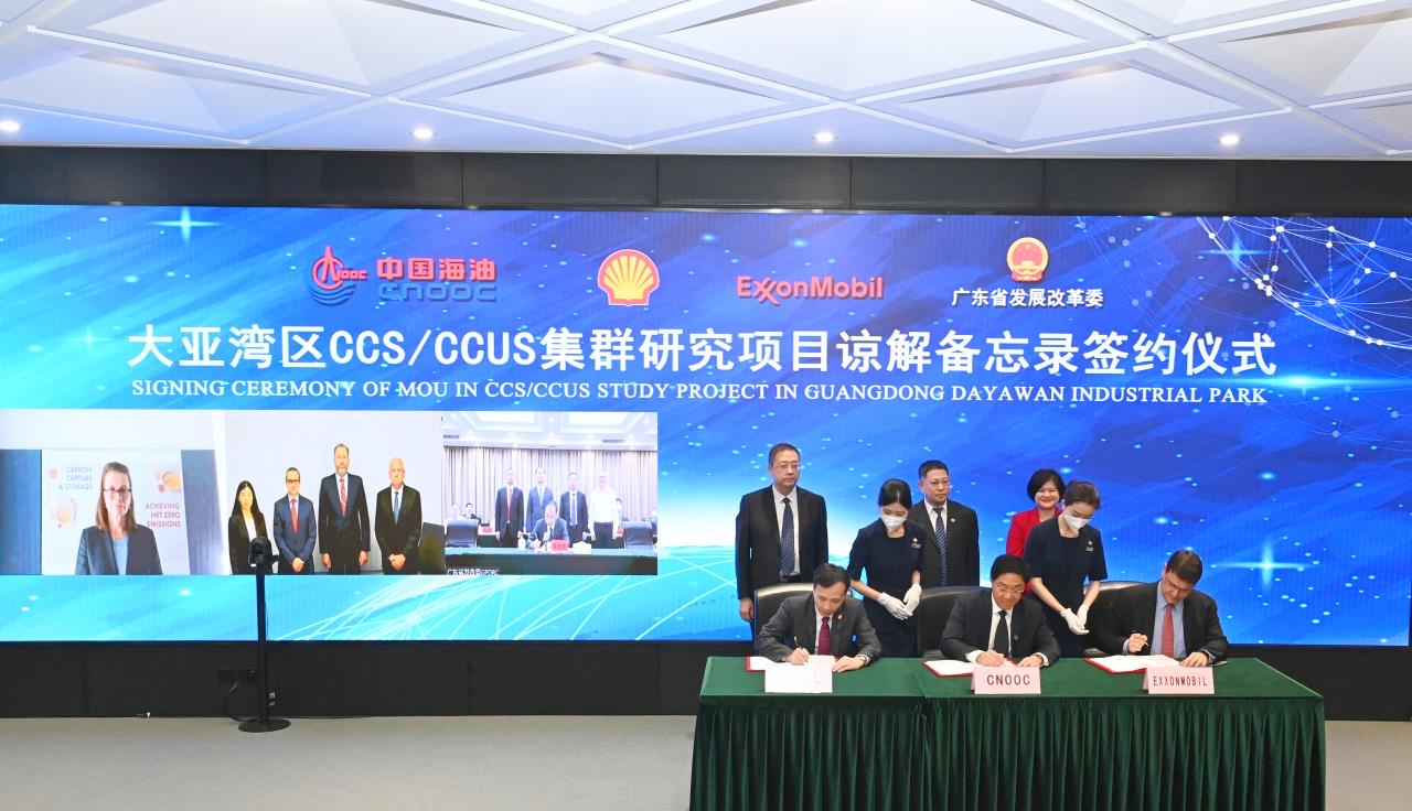 记者从中国海油获悉,6月28日,该公司与广东省发展和改革委员会(简称“广东省发改委”)、壳牌(中国)有限公司(简称“壳牌”)和埃克森美孚(中国)投资有限公司(简称“埃克森美孚”)在中国北京、广州、英国伦敦、美国休斯敦四地以“线上+线下”形式共同签署大亚湾区二氧化碳捕集、利用及封存(简称“CCS/CCUS”)集群研究项目谅解备忘录,标志着我国首个海上规模化(300~1000万吨级)CCS/CCUS集群研究项目正式启动。