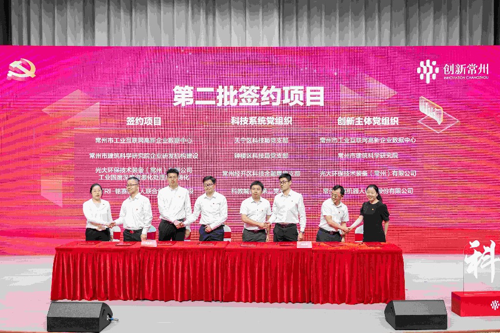 此次,常州市科技系统发布了“1+7”党建工作品牌矩阵,1即“科技牵引力”市科技党建品牌引领,7即“微笑经济先锋服务”“科技服务‘三贴近’”“360科技管家”等7个板块科技党建品牌;溧阳市科技局党支部与重庆大学溧阳智慧城市研究院等8项服务“532”发展战略重点项目签约;举行了创新链党建联盟成员单位授牌仪式等。