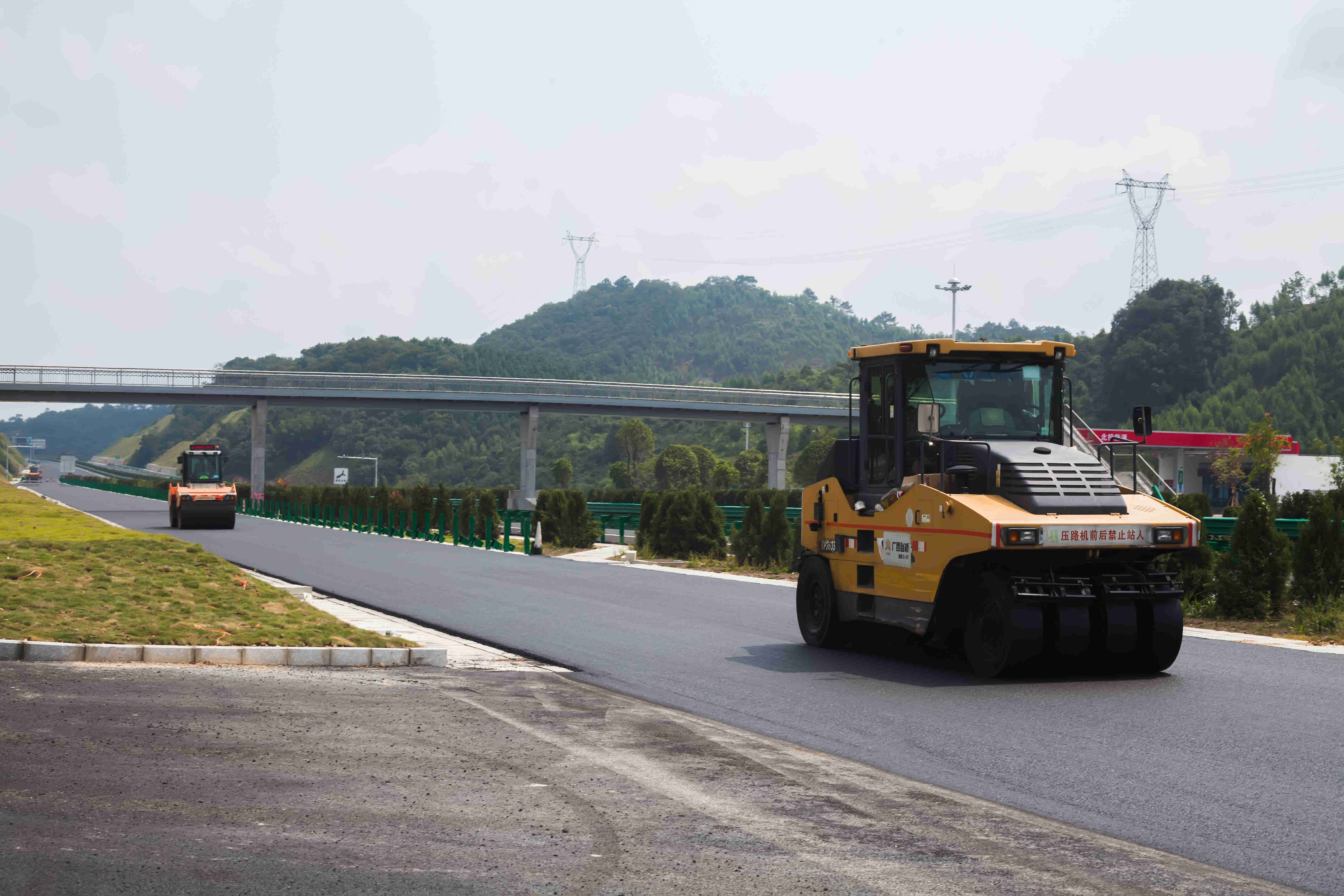 压路机在进行路面压实工作。信梧高速指挥部供图