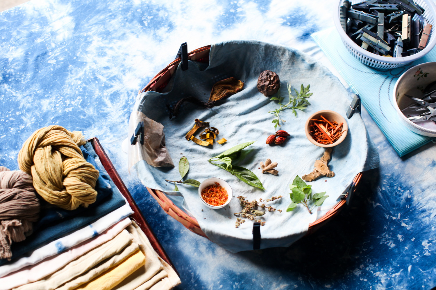 从成都来到云南,她利用北回归线以南丰富多彩的植物,揉入江南、江北以及云南各民族的传统技艺,将织物染出了千般色彩。对她来说,田边的杂草、掉落的树叶、剥下的果皮,无不可当染料。
